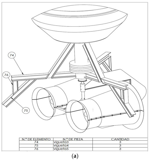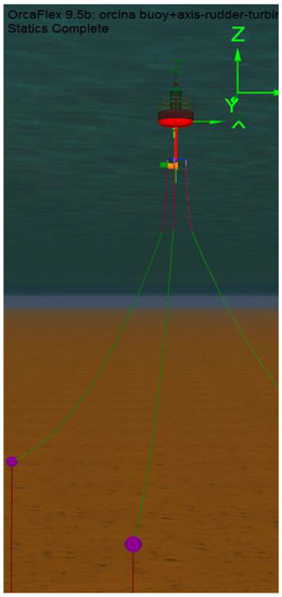 The hydrostatic-hydrodynamic design of the system was carried out mainly by Orcina OrcaFlex software [29]. OrcaFlex is a software package for static and dynamic analysis of offshore marine systems. Among other capabilities, it allows the simulation of 6 degrees of freedom systems with a full 3D representation. Specifically, this software allows one to carry out simulations of the catenary anchor system incorporating environmental conditions as currents, wind, waves, eddies, and so on, checking the stability and buoyancy of the prototype and the stresses in each of the mooring cables, and selection of materials, types, and weights able to support the catenary tension. This software has been used to simulate the complete system behavior under average and extreme weather conditions (currents, waves and wind). We have successfully managed to perform the modeling and simulation of the full buoy system including the catenary system and the turbine rotating system. Figure 1 shows the buoy dimensions and weights.