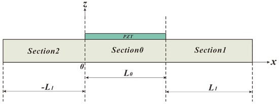 Figure 1 shows the configuration of the piezoelectric structure, which consists a slender beam (metal substrate, the length/thickness ratio is 15.9) made of aluminum and a piezoelectric patch (PZT). The whole structure divides into four parts; Sections 0–2 represent the metal substrate. L0 and L1 denote the lengths of related sections in Cartesian coordinates. The nomenclature used in this paper is summarized in Appendix B.