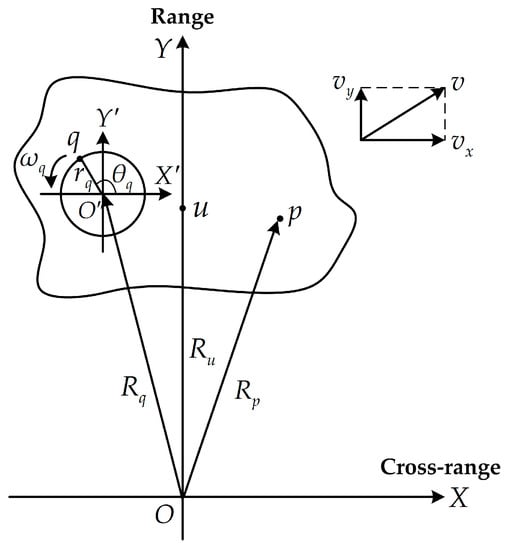 It is assumed that the target has a constant velocity in a short coherent processing interval (CPI). Thus, the aspect angle variation of the target is calculated to be . Because the target is far from the radar, the instantaneous distances from and to the reference point can be approximately expressed as