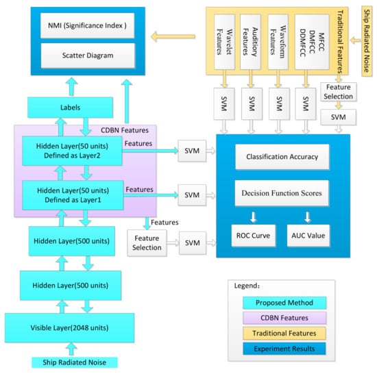 - The experimental results demonstrated that the proposed CDBN method is effective for underwater acoustic target recognition. It can significantly reduce the random noise and enhance the line-spectrum characteristics of ship noises, and the CDBN features have better classification performance than other hand-engineered features.