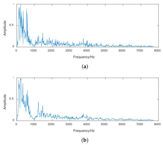 (a) Spectrum of ship-radiated noise reconstructed by CDBN; (b) Spectrum of ship-radiated noise.