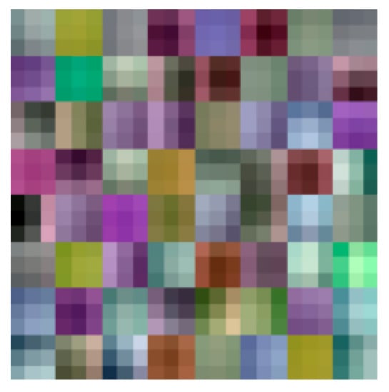 Example of the obtained filters from the first convolutional layer through training.