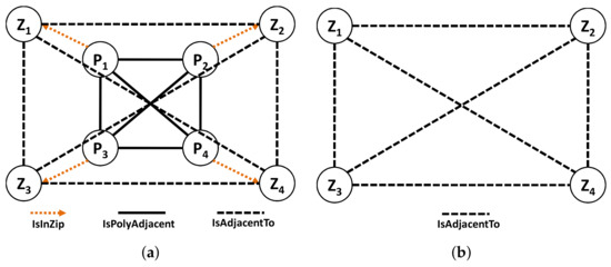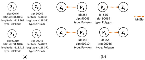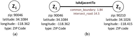 Graph data modeling-proximity computation. (a) ZIP code node; (b) IsAdjacentTo Edge.