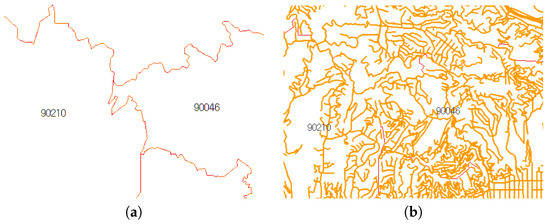 Raw data visualization. (a) ZIP code boundary; (b) TIGER/Line road network.