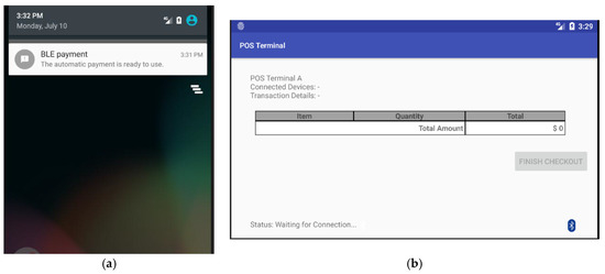 A prototype of the proposed mobile payment system was implemented. The POS terminal App prototype was deployed on a Samsung Galaxy S5 phone, while the mobile payment App prototype was installed on a Samsung Galaxy S6. For the Bluetooth beacon tag, iBeacon-based tags are used in the prototype. Other Bluetooth beacon protocols such as Eddystone, AltBeacon, and FatBeacon could be utilized to build similar mobile payment prototype systems. All devices used in the experiments and some of their features are listed in Table 2.