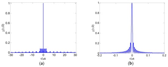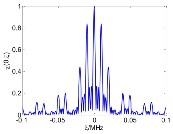 The central area ambiguity function envelope of the CSF-CFSK/PSK signal depends mainly on the CFSK/PSK signal, which can be obtained from Equation (11). The CSF-CFSK/PSK range ambiguity function is