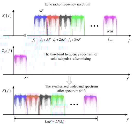 where is the frequency spectrum of . According to the stepped frequency sequence , the subpulse spectrum is shifted by in the frequency domain. After coherent synthesis, the wideband spectrum is