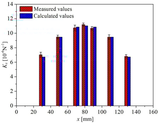 The final calculated sensitivity coefficient Kx in terms of different loading positions has the following form: