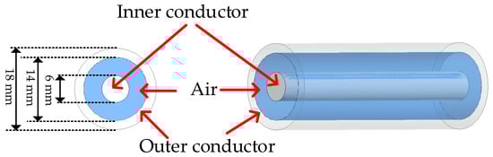 A schematic drawing of the hollow coaxial cable (HCC). The HCC consists of an inner conductor, an outer conductor, and air serving as a dielectric layer.