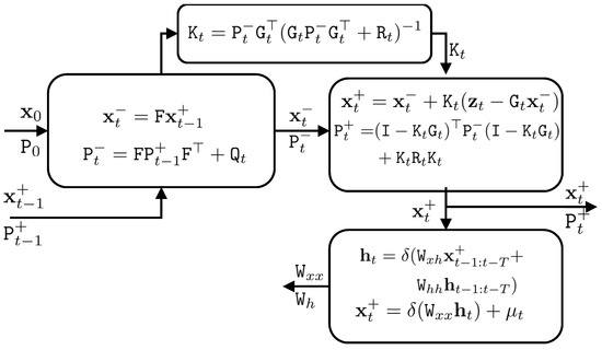 Mirowski and Lecun [14] introduced dynamic factor graphs and reformulated Bayes filters as recurrent neural networks. In their proposed approach, the observation and system models of the Kalman filter are learned from observations. Gu et al. [15] reformulated the Kalman filter and recurrent neural network to model face landmark localization in videos. Krishnan et al. [16] integrated the Kalman filter and variational methods for learning famous handwritten digit datasets, Modified National Institute of Standards and Technology (MNIST).