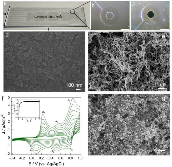 3.1. Formation and SEM Characterization of Au-PANI Nanofibers on ITO Disk Electrode