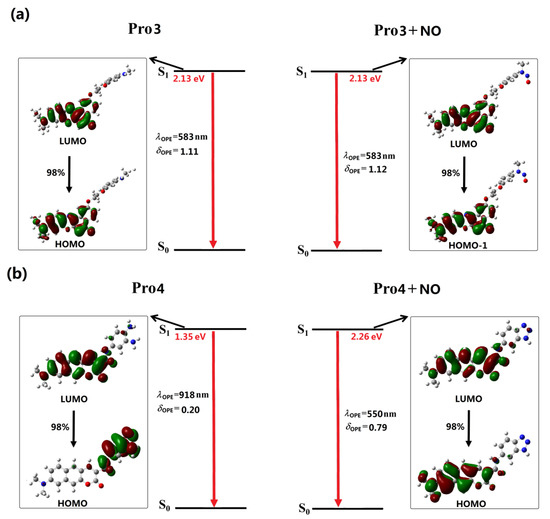 The OPE of (a) Pro3, Pro3 + NO and (b) Pro4, Pro4 + NO.