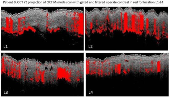 3.3. Speckle Contrast Analysis of M-Mode OCT Scans
