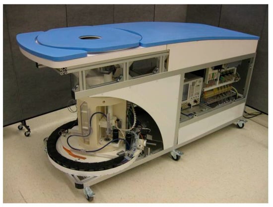 View of the patient compatible monostatic radar system with adaptive sensor placement capability (image source: Sensors 2017, 17, 1658).