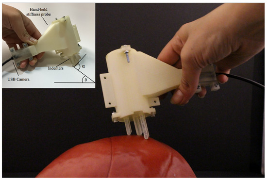 It is reported that the sensitivity of palpation procedures, i.e., the clinician’s ability to correctly identify a tumour, is subjective and highly dependent upon the skill and experience of the practitioner—a skill often difficult to master [1,5,6]. Inadequate clinician training may contribute to a wide range of differences in diagnosis results based on such physical examination. During the last two decades, researchers have developed several instruments able to mimic the traditional manual palpation techniques that may be reliable, but are often difficult to use in a clinical setting [7]. It is noted that a system able to provide feedback to medical experts’ real-time quantitative measurements of soft tissue properties, force and stiffness is still missing and highly desirable [8,9]. Such system could be used for different purposes, e.g., to train early-career clinicians to reliably distinguish between the stiffness values of different types of tissue, a task which currently is performed and limited by medical simulators [5], to have quantitative measurements in tele-palpation tasks and even as a portable breast self-examination (BSE) device that can be used by women at home in order to detect subtle changes in breast tissue. The quantification of stiffness changes during BSE may provide important diagnostic information and aid in the early detection of minor abnormalities before they become serious.