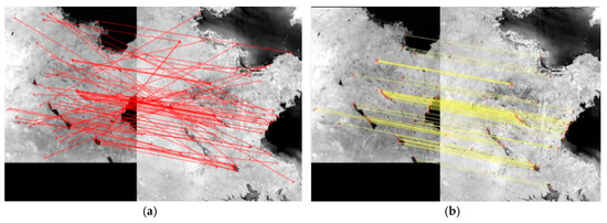 Coarse matching result. (a) The coarse matching result by SIFT; (b) The coarse matching result by SR-SIFT.