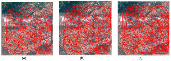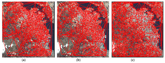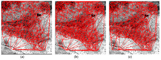 Matching result on Dataset 3. (a) CMPs with TIN by Lee’s method. (b) CMPs with TIN by Li’s method. (c) CMPs with TIN by the proposed method.