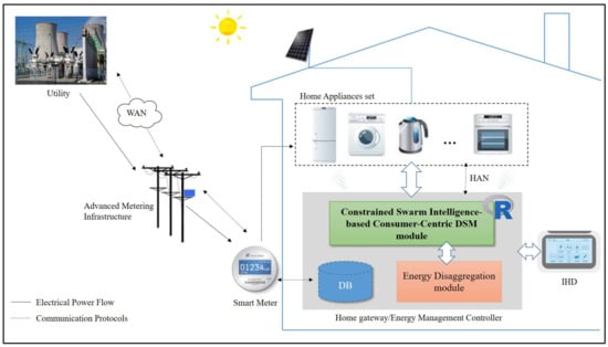 Schematic Diagram of the residential consumer-centric DSM model enabling utilities and consumers to operate their energy management schemes.