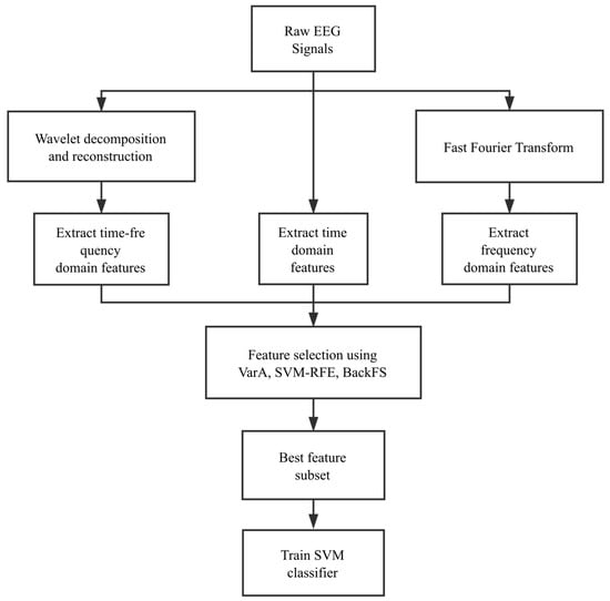 This study carried out a series of feature evaluation and model optimization procedures in the following outline, as shown in Figure 2. Compared with intracranial EEG signals, scalp EEG signals are subject to many sources of external disturbances, e.g., the influences of the scalp and skull.
