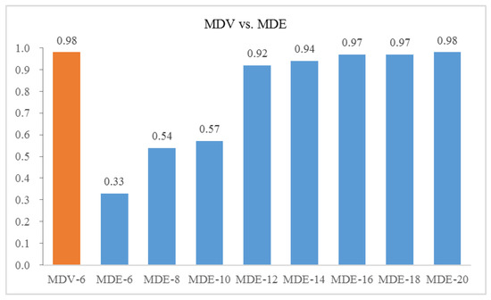 The last column MDV in Table 4 is an improvement of MDE for preventing high collinearity. To examine the effects of the proposed algorithm, Correlation analysis is conducted for MDV and MDE as shown in Figure 6.