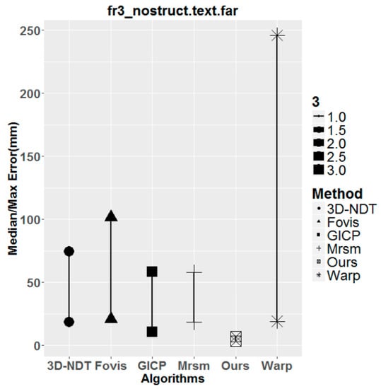 For the fr2_rpy sequence, because the scene provides both geometric and visual features, both the point feature-based method and structure-based method achieve high accuracy, within 5 cm of the median ATE. In the fr1_360 and fr3_structure.text.near sequences, they contain abundant geometric structures. As Mrsm is structure-based, it performs better than the other methods, which indicates that the Mrsm algorithm may complement our visual-based SLAM system in scenes with an abundance of structures.