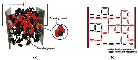 (a) Schematic of nano-NSS; (b) Equivalent resistor network (formed by directly-contacted nanoparticles and indirectly-contacted nanoparticles via the quantum tunneling effect).