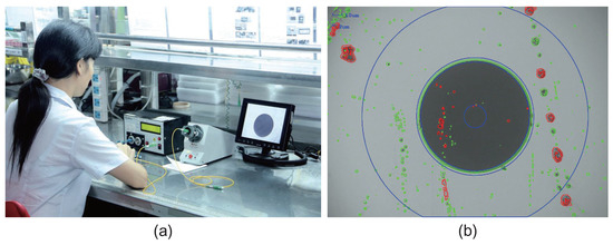 Traditionally, the inspection of optical fiber end faces is conducted by human inspectors, as shown in Figure 3a. Similar manual visual approaches have many inadequacies, such as poor consistency, non-quantitative evaluation, and high labor costs. In recent years, with the rapid advancement of machine vision and digital image processing techniques, automated defect detection for optical fiber end faces and many other applications [5] has become possible. However, accurate and robust inspection is still a challenging task in this field.