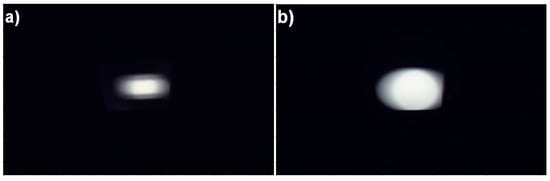 Example FPI images of the reflectance panel illuminated with (a) Polaron and (b) FEL lamp, 500 mm lamp distance. Only the centre part of the illuminated area was used for calibration.