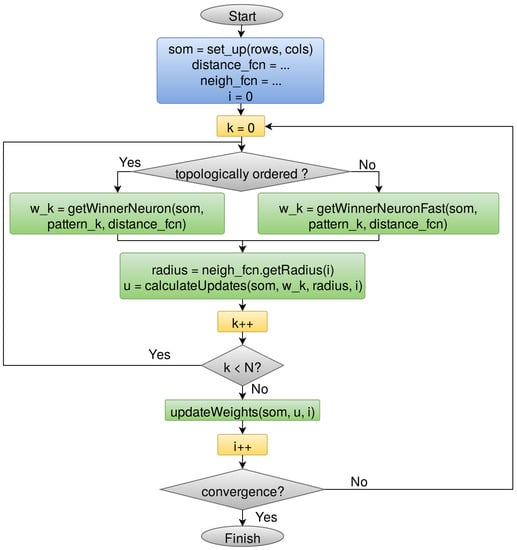 - Kohonen, T. Self-organized formation of topologically correct feature maps. Biol. Cybern. 1982, 43, 59–69. [Google Scholar] [CrossRef]