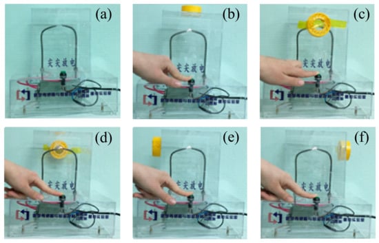 The experiment was carried out with the OFPDS platform. In the OFPDS platform, the length of the delay fiber was 2 km, the length of sensing fiber 1 was 4 km and the length of sensing fiber 2 was 4 km. The optical fiber sensing probe shown in Figure 3 was placed 4.1 km away from the start of the OFPDS, and the sensing probe was placed in different positions on the PD model. We made the needle–needle discharge in an orderly manner by triggering the switch button, as shown in Figure 9.