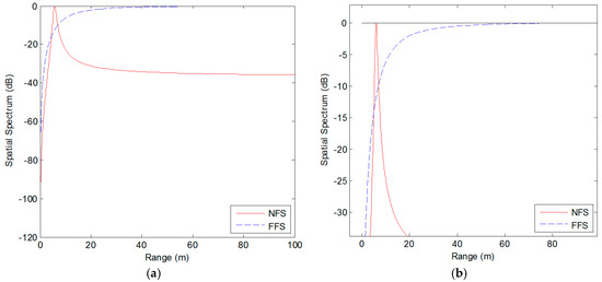 Spatial spectrum of range estimation: (a) Overall diagram; (b) Partial enlarged diagram.
