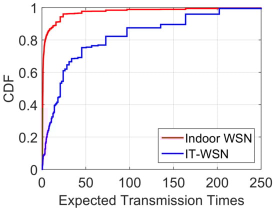 The expected transmission times distribution in an indoor WSN and an IT-WSN in Zhoushan.