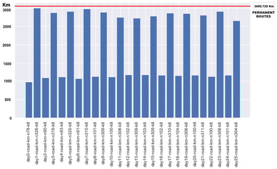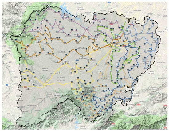 - CVRP data: once the nodes and the depot location have been obtained, the geographic information of every node is loaded from the geographical information subsystem to get the matrix of costs that will be employed for the CVRP resolution. The number of available vehicles must also be defined, as well as an ending criterion related to the time intended to be spent seeking the best solution. The system was implemented using the Graphhopper [86] framework and data from OpenStreetMap.