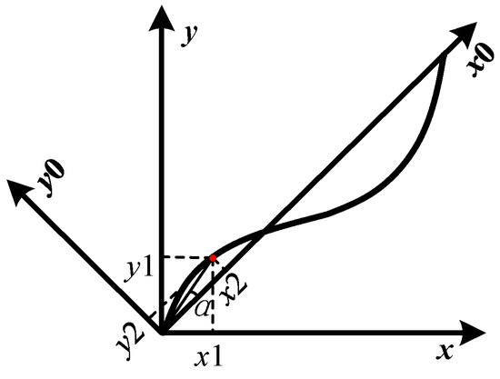 For any point (x1, y1) on the curve, the relationship between the two coordinate systems can be established using Equation (4):