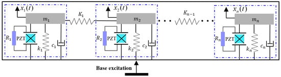 Similarly, the effective spring force between any two adjacent energy harvesters can be calculated. In this study, each energy harvester separately connects with an external load resistance. Therefore, there are n mutually independent electrical equations based on Kirchhoff’s law. Finally, the theoretical model of the NPEHS with n linear energy harvesters in the first-order modal coordinate system are obtained and described by the following equations: