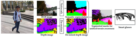 In this section, our approach to unify the navigation-related terrain awareness is described in detail. As shown in Figure 2, our approach is outlined in terms of the wearable navigation assistance system, which incorporates the robust depth segmentation and the real-time semantic segmentation.