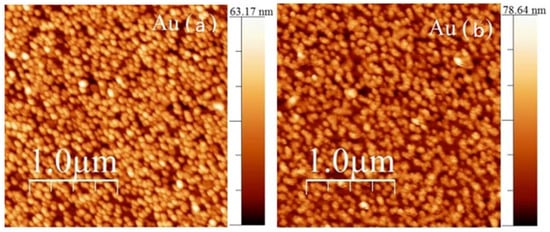 - Lee, W.E.; Kim, J.E.; Park, H.Y.; Park, S.; Kim, M.S.; Kim, J.T.; Ju, J.J. Optical constants of evaporated gold films measured by surface plasmon resonance at telecommunication wavelengths. J. Appl. Phys. 2008, 103, 073713. [Google Scholar] [CrossRef]