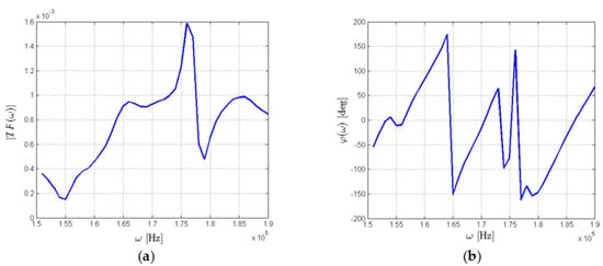 Both components of —its amplitude and the phase—carry the information about mechanical properties of the structure within the sensing range of a given pair of transducers, but also depend on other factors, e.g., the properties of the PZT transducers used or the distance between them. Taken together, this results in a nontrivial behavior of the transfer function with respect to the frequency of the voltage applied to the PZT actuator.