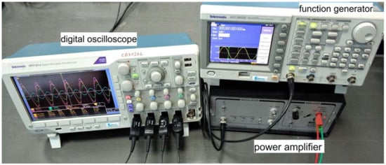 The measurement setup used in the experiment included a PC computer, digital oscilloscope, arbitrary function generator and power amplifier (Figure 6 and Figure 7).