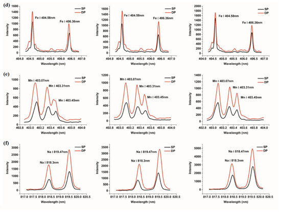 - Qi, L.; Sun, L.; Xin, Y. Application of stand-off double-pulse laser-induced break down spectroscopy in elemental analysis of magnesium alloy. Plasma Sci. Technol. 2015, 17, 676–681. [Google Scholar] [CrossRef]