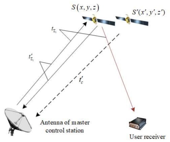 —contains two parts: the model error of T which is usually smaller than 1 ns [] and the ephemeris error which is about 2–3 m []. This ephemeris error reflected in the measurement is the projection on the vector from the satellite to the user.