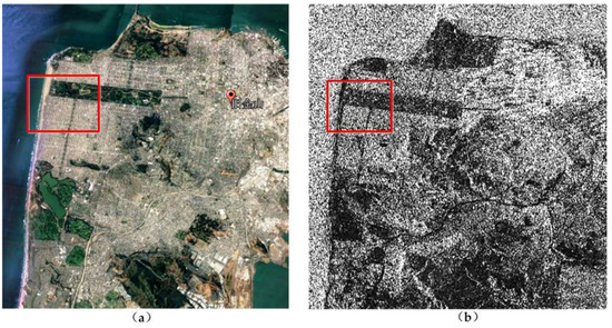 Figure 4 shows a Google Earth map obtained on 2 September 2017 and the span image of GF-3 polarimetric SAR. The area size is 2557 × 1787 pixels.