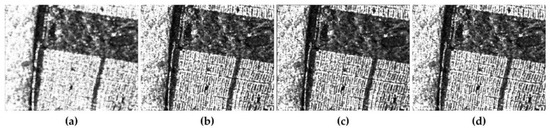 Figure 13 shows that this principle can reduce the speckle noise more thoroughly than the filtering result only by MCPF. Obviously, this restriction can keep the edge and texture as much as possible. Though there may be some small square imprints in the vegetation area, the edge signature is very distinctive, especially in building area. As for the result filtered only by SMPF, a dominant contribution is that it can preserve the polarimetic scattering mechanism for all the three different areas. From