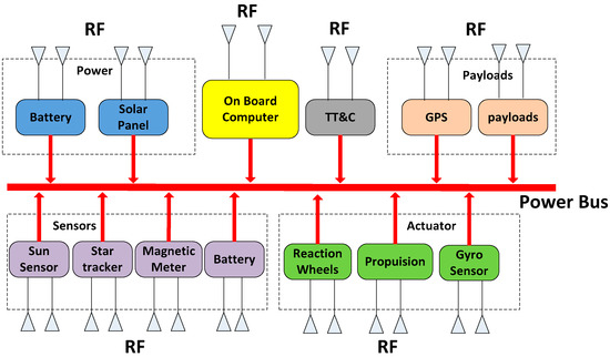 - Li, S.; Fan, G.; Xu, G. Application of Wireless Satellite Bus in micro-satellite design. In Proceedings of the International Conference on Mechatronics and Automation, Changchun, China, 9–12 August 2009; pp. 2612–2616. [Google Scholar]