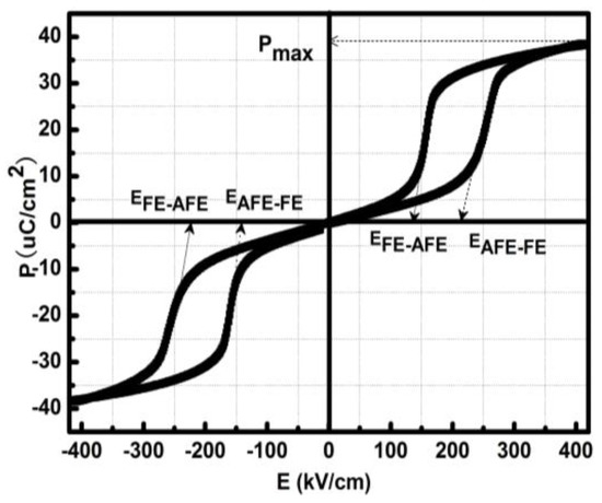 Polarization-Electric (P-E) field density curves of antiferroelectric thick film.