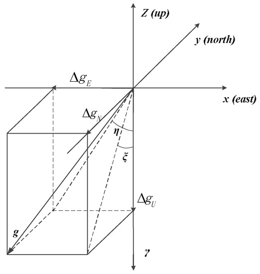 where, ΔgN, ΔgE, and ΔgU are presented as the north, east, and vertical components of gravity disturbance, respectively. γ0 is the value of normal gravity.