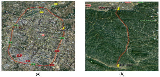 Test profiles on Google map. (a) Test 1; (b) Test 2.