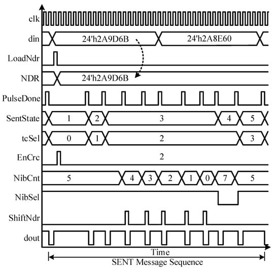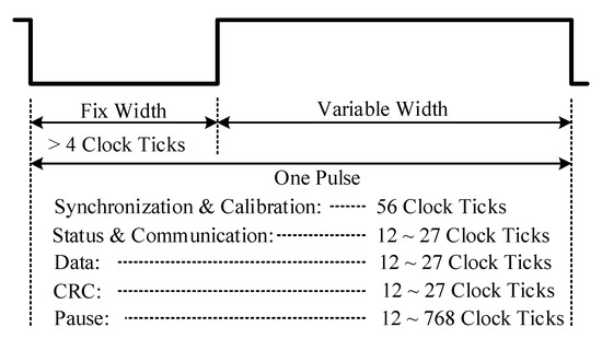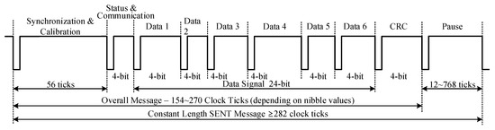 - SAE SENT Task Force. SENT—Single Edge Nibble Transmission for Automotive Applications SAE J2716. SAE Int. 2010. [Google Scholar] [CrossRef]