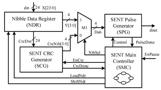 - Beaurenaut, L.; Eggiman, C.; Gastinger, F.; Platzdasch, H.; Friedrich, R.; Michael, S. Single-Edge Nibble Transmission: Challenges and Evolutions. SAE Tech. Paper 2009. [Google Scholar] [CrossRef]