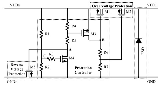 - Cho, S.H.; Lee, D.S.; Ali, I.; Kim, S.Y.; Pu, Y.; Yoo, S.; Lee, K.Y. Highly reliable automotive integrated protection circuit for human body model ESD of +6 kV, over voltage, and reverse voltage. Electron. Lett. 2017, 53, 843–845. [Google Scholar] [CrossRef]